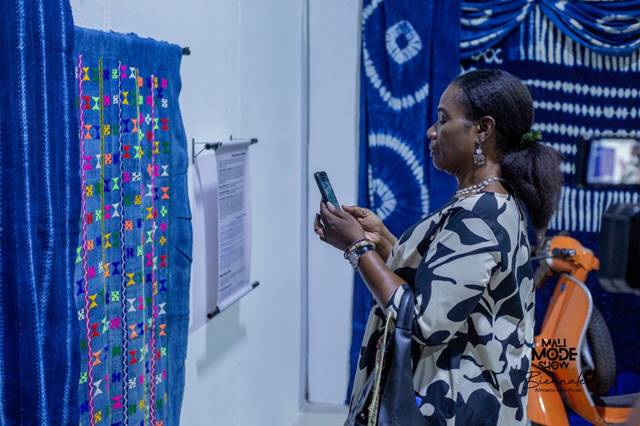 Une vue de l’exposition Afrique Bleue-histoires tissées en indigo organisée dans le cadre de Mali Mode Show 2025