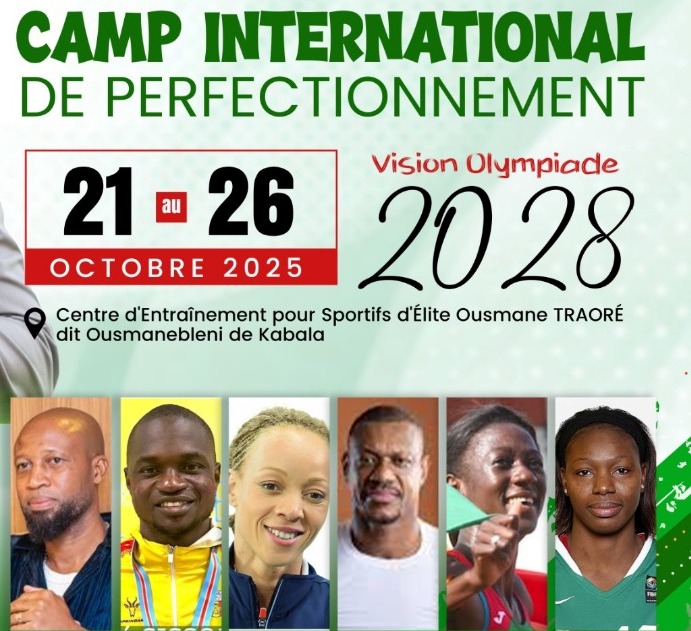 Le Centre d’entraînement pour sportifs d’élite Ousmane Traoré dit « Ousmane Bléni » de Kabala a abrité le premier Camp international de perfectionnement de la « Vision Olympiade 2028 » du 21 au 26 octobre 2025. Organisé par la Direction nationale des sports et de l’éducation physique (DNSEP), ce regroupement a réuni de nombreux athlètes de haut niveau, notamment Daba Modibo Keïta, Nantenin Keïta et Djénébou Danté… qui ont partagé leurs expériences avec les participants !